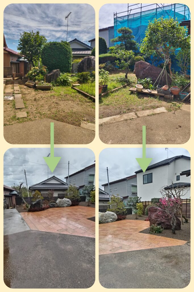 店主様より植栽が出来るようにとのご依頼で既存コンクリートを壊して御影石で植栽スペースを施工させていただきました。 植木も店主様のご意向でアジサイを植え付けさせていただきました。